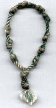 You can see a picture of the bracelet that I made and wore for those 170 day. This bracelet was my reminder not to forget to make my bead knot each day. It would also serve as a witness to spread the word about the rosary whenever asked about the bracelet, which had become ratty looking. I would put color on it to brighten it up so it wouldn't look too bad at a formal function.